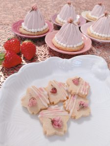 桜のフレーバーを出すのに、桜の塩漬け、桜あん、桜パウダー、桜エッセンスなど、いろいろなものがあるのですが、出来るだけ皆様が購入して作りやすい材料でレシピを考えています。